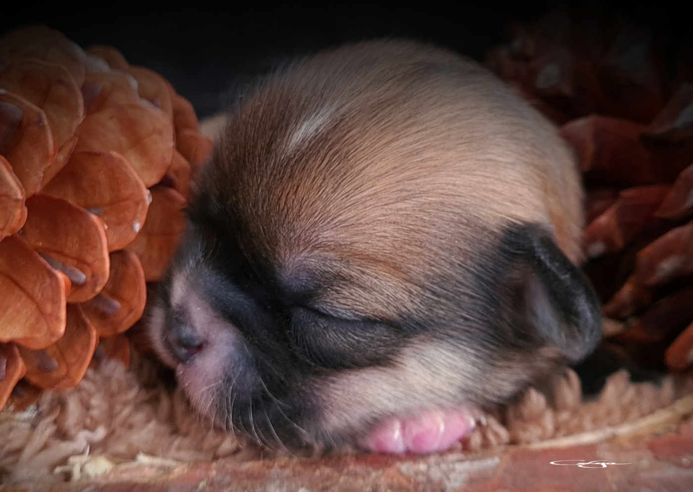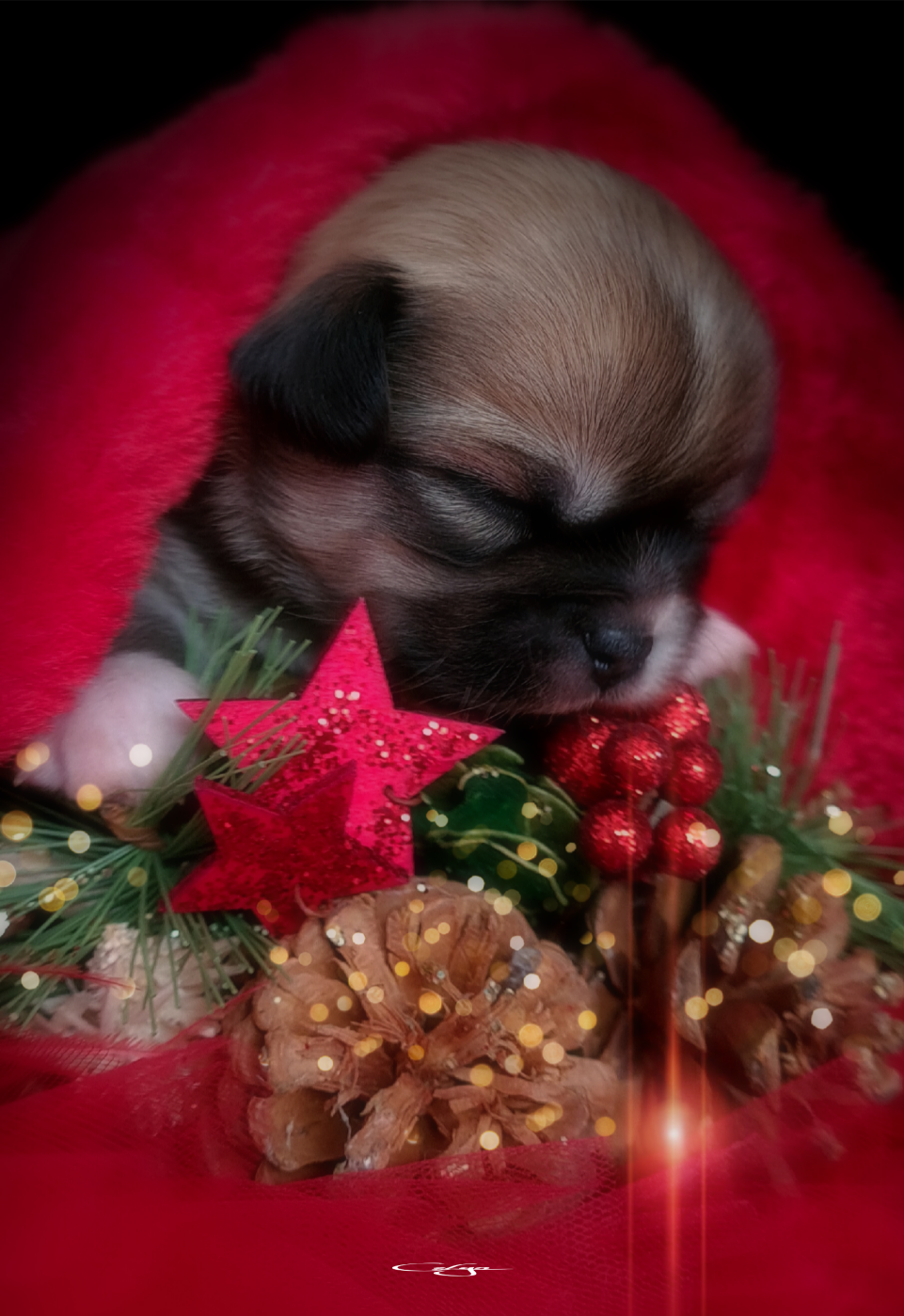 1 petit Prince fauve charbonné🐿 avec ses petites chaussettes, plastron et barbichette blanc qui a déjà un style “haute couture canine” 😎.